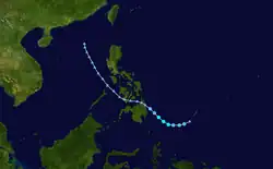 On March 16, a tropical depression formed to the south of Guam. It immediately entered the Philippine Area of Responsibility, earning the local name Bebeng. It executed a small loop to the east of Mindanao before it traveled to the northwest. It exited the Area of Responsibility as a tropical storm before transitioning to an extratropical storm, southwest of Minami-Tori-shima. The extratropical storm weakened and dissipated on March 21, to the south-southeast of Japan.