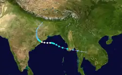 This cyclone was formed on 20 September and intensified to a Very Severe Cyclonic Storm despite being present over the upwelled waters due to Cyclone 09B. It made landfall at Gopalpur in Odisha on 22 September and dissipated by the next day. Wind gusts of up to 140 km/h (85 mph) were recorded at the time of landfall. Despite severe damage to crops and houses, no deaths due to the storm were reported.