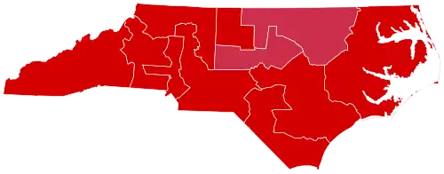 Amidst a nationwide landslide defeat especially felt in the South, McGovern won only two counties in North Carolina, neither of which have voted for a Republican presidential candidate since the Fourth Party System era: Orange County in the Research Triangle region, home of the University of North Carolina at Chapel Hill, and majority-Black Northampton County in the northeast of the state.[2] Even in these counties, where most Democratic candidates receive over sixty percent of the vote (and where Walter Mondale in 1984 would still win by double digits), McGovern won by less than five points.[3] Among white voters, 78% supported Nixon, while only 20% supported McGovern.