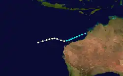 Beryl formed just south of the Lesser Sunda Islands on November 26. The cyclone strengthened, peaking with winds of 125 km/h (80 mph) on December 1. Three days later, Beryl made landfall near Carnarvon, Western Australia and quickly dissipated. Minor wind damage was reported.[3]
