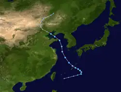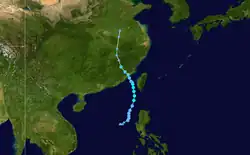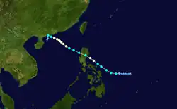 Dinah, which developed on June 7, hit Luzon on the 10th as an 80 mph typhoon. It continued northwestward, hit Hainan Island, crossed the Gulf of Tonkin, and dissipated over North Vietnam. Dinah caused 73 casualties (with 33 missing), with $3 million in crop damage (1974 USD).