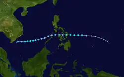 Kit developed on December 18 in the open Pacific. Upon hitting the Philippines, the system weakened to a tropical depression. The storm re-intensified to a tropical storm in the South China Sea before dissipating on December 24.