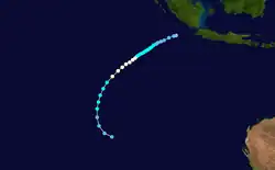| Peak intensity | 155 km/h (100 mph) (10-min); 961 hPa (mbar) |