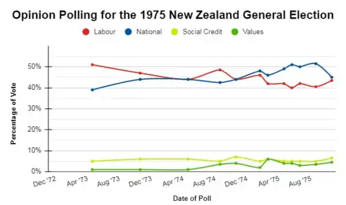 - ^ "Poll shows National lead". The Press. Vol. CXV, no. 33979. 21 October 1975. p. 20.