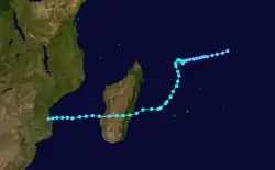 On January 8, Clarence passed near St. Brandon, producing high waves that destroyed four boats and several homes. Wind gusts on the island reached 169 km/h (105 mph). For several days moved in a counterclockwise track around the Mascarene Islands, producing high waves and beneficial rainfall on Réunion.[2]