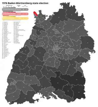 2. ^ "Endgültige Ergebnisse der Wahl zum Landtag von Baden-Württemberg am 4. April 1976" (PDF) (in German). Statistisches Landesamt Baden-Württemberg. 1976-04-28. Retrieved 2025-05-18.
