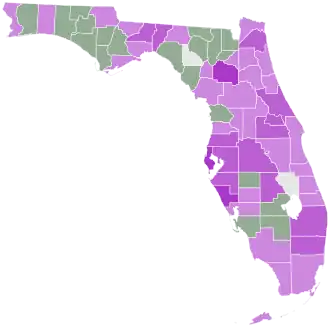 2. ^ These results are incomplete. At the time of their tabulation by the Tampa Bay Times on 9 September, 3,376 of 3,445 precincts had reported. Due to this, some county results may be inaccurate.
