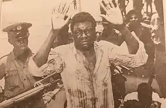 The insurgents engaged in three days of house-to-house fighting in Khartoum and Omdurman which killed some 30,00 people.[13] Officers and soldiers in the armed forces, who were at the time in their homes, could not reach the general command, as all the main and secondary roads leading to the command were located under the grip of the militants,[11] who, with their sub-machine guns outmatched the Sudanese army, forcing them to retreat to the desert on the opposite side of the Nile.[4] The Khartoum International Airport had been under their for three full days, during which they prevented the landing or take-off of planes and greatly damaged airport buildings.[11] Bona Malwal, Minister of Culture and Information at the time, and Abel Alier, Second Vice President of Sudan, continued to broadcast the news from Juba instead of Omdurman and painted the coup as an invasion by "mercenaries". During that time, Nimeiry was able to rally the nation via Radio Juba.[14][15]