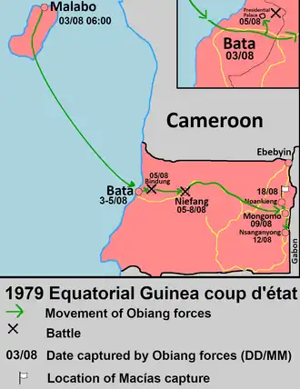 ![]() Map of the 1979 Equatorial Guinea coup d'état | |||||||