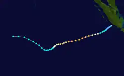 | Peak intensity | 155 km/h (100 mph) (10-min); 960 hPa (mbar) |