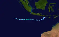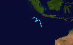 Formed on 3 November, just south of Selat Mentawai then moved southwestward before reaching a peak intensity of 110 knots (130 mph; 200 km/h) and a minimum pressure of 940.0 hectopascals (27.76 inHg) on 8 November. On 12 November the storm began to move northwestward and two days later dissipated over the open Indian Ocean.
