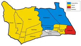 1. ^ Local elections in Britain: a statistical digest, edited by Colin Rallings and Michael Thrasher. 2nd Edition 2003