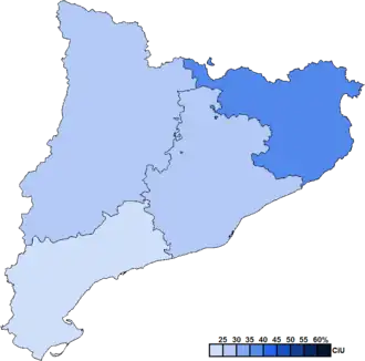 The election results granted a victory with nearly 28% of the vote and 43 seats for the Catalan nationalist Convergence and Union (CiU), the alliance of Democratic Convergence of Catalonia (CDC) and Democratic Union of Catalonia (UDC) led by Jordi Pujol, despite earlier predictions that the Socialists' Party of Catalonia (PSC–PSOE) would emerge as the largest party in parliament and maintain the first place it had achieved in the 1977 and 1979 general elections.[2] Compared to the general elections, the PSC ambiguous positions throughout the campaign were said to have cost them votes both to the Unified Socialist Party of Catalonia (PSUC) and to the Republican Left of Catalonia (ERC)—both of which saw improvements to their general election results—as well as to abstention and, to a lesser extent, to the Socialist Party of Andalusia–Andalusian Party (PSA–PA), which was only narrowly able to enter the Parliament.[3][4] Results for the Centrists of Catalonia (CC–UCD) alliance were seen as disappointing, having lost many votes to Pujol's coalition and being shut from any chance to lead the regional government.[5][6]