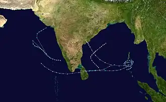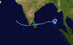 The last storm of the season formed in the central Bay of Bengal on December 12. It moved east-southeastward, then turned to the west where it briefly became a tropical storm. The storm struck eastern Sri Lanka and dissipated over the island on the 17th.
