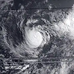 Overall, the 1980 season was slightly below the long-term average, with 16 tropical cyclones forming. Of those, 15 were named, 7 reached hurricane intensity, and only 3 became major hurricanes by attaining category 3 status or higher on the Saffir–Simpson scale.[3] All eastern Pacific systems this year formed in the eastern Pacific proper and two storms crossed into the central Pacific: Carmen from the west and Kay from the east.[4] The season had an early start when Carmen crossed over the International Date Line in April.[4] The strongest storm of this season is Hurricane Kay, peaking at 140 mph (225 km/h). Kay lasted for fourteen and a half days, which was the fifth-longest-lasting Pacific hurricane at the time.