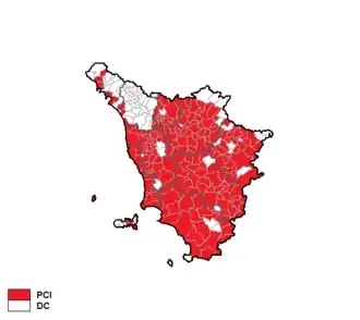 In 1983 a government crisis occurred as the relationship between the Communists and the Socialists had become tense at the national level. Communist Gianfranco Bartolini formed a one-party government and then a new coalition government with the Proletarian Unity Party.[1]