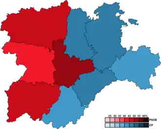 ![]() Constituency results map for the Cortes of Castile and León | ||||||||||||||||||||||||||||||||||||||||||||||||||||||||||||||||||||