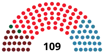 Last election 66 seats, 52.6% 17 seats, 17.0%[a] 8 seats, 8.6%[b]