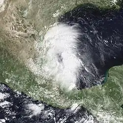 A tropical wave crossed the Caribbean sea, moving into a favorable upper environment in the western Caribbean sea on August 31. The system formed into a weak tropical depression before crossing the Yucatán peninsula, becoming better organized as it moved into the south-central and western Gulf of Mexico between September 1 and 3. The system moved ashore east-central Mexico before quickly dissipating as a tropical cyclone on September 4. Satellite imagery revealed that its residual cloud pattern persisted over Mexico for an additional couple of days before degenerating. Heavy rainfall fell primarily north of its track, with the maximum across northeast Mexico falling at El Barranco/Altamira, where a total of 9.33 inches (237 mm) was measured.[31]