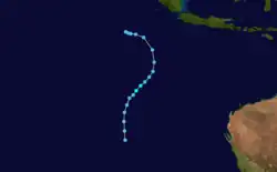| Peak intensity | 100 km/h (65 mph) (10-min); 988 hPa (mbar) |