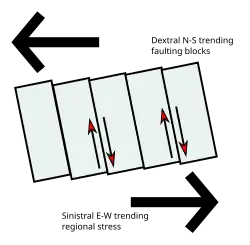A simplified diagram of bookshelf-style faulting