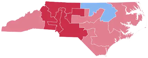 With the exception of Jimmy Carter's victory in North Carolina in 1976, the state had voted for the Republican presidential nominee in every election since 1968. Republican membership in the United States House of Representatives from North Carolina peaked in elections held concurrently with the presidential elections and shrank in the following midterms. Jesse Helms's victory in the 1972 senatorial election made him the state's first Republican senator in the 20th century and John Porter East was elected to the state's other seat in 1980, but lost in the 1986 election.[3] Republican identification among voters in the state rose from 27% to 37% between 1968 and 1986 while identification among Democrats fell from 68% to 58%.[4]