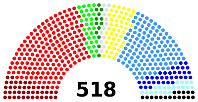 * The number of seats was increased from 434 to 518 – so this is a nominal figure