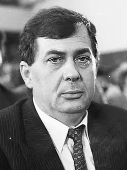 The Assembly of SR Serbia was constituted on 5 December 1989. Zoran Sokolović was elected president of the Assembly, while Vukašin Jokanović, Slobodan Janjić, and Đorđe Šćepančević were elected vice-presidents of the Assembly.[46] Stanko Radmilović was elected prime minister of Serbia,[47][48] while on 6 December, the Assembly of SR Serbia officially declared Milošević as the president of the presidency.[44] Radmilović was a Milošević loyalist.[49]
