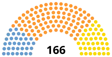 Last election 52.70%, 123 seats 26.83%, 22 seats 16.12%, 20 seats[a]