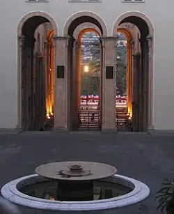 Around 07:30, Murtaz Shualashvili orders the first fire against Parliament[66] and Karkarashvili launches four rockets on the Parliament building,[53] inaugurating two weeks of violence. According to a New York Times report, the opposition refuses to accept any responsibility with the first attack.[67] Throughout 22 December, both sides use rockets, grenades, and automatic weapons to fight each other.[67] The Kashveti Church, which houses opposition soldiers, becomes a target of governmental forces.[68] The Gamsakhurdia household, nicknamed "Colchis Bell", catches fire,[53] but the family, under governmental protection during the coup, remains safe.[45]