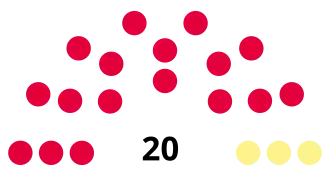 Party Seats Gains Losses Net gain/loss Seats % Votes % Votes +/−