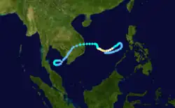 | Forrest | November 13 – 15 | Tropical storm | 75 km/h (47 mph) | 992 hPa (29.29 inHg) | Vietnam, Thailand, Myanmar (before crossover) | None | 2 | |