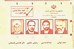- ^ Anoushiravan Ehteshami (2002). After Khomeini: the Iranian Second Republic. Routledge. pp. 68–69. ISBN 9781134838851.