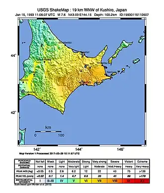 - ^ "The Kushiro-Oki Earthquake, 1993 (January 15, M7.8) (Japan Meteorological Agency)" (PDF). Geospatial Information Authority of Japan. Sapporo District Meteorological Observatory, JMA.