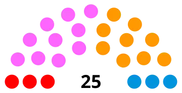 Last election 7 seats, 28.5%[a] 9 seats, 32.8%
