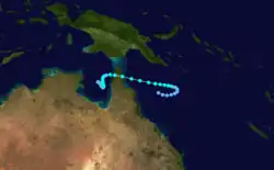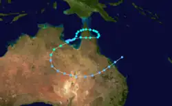 Twice transited Cape York Peninsula before making a final landfall along the southern coast of the Gulf of Carpentaria, in the Northern Territory.[4] Severe flooding triggered by Cyclone Ethel resulted in A$75 million (US$57 million).[5]