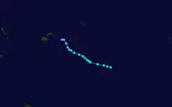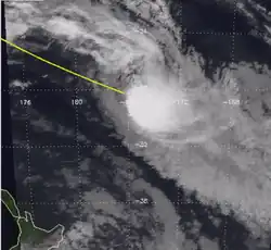 On January 12, the FMS reported that a tropical depression had developed over the Fijian island of Vanua Levu, about 430 km (270 mi) to the south of Labasa.[8] Over the next few days, the depression moved towards the southeast before it started to affect Tonga on January 15.[12] During the following day, the depression rapidly developed further as it interacted with the South Pacific Convergence Zone, before the NPMOC initiated warnings on the system and designated it as 08P.[3][8] At 0000 UTC on January 17, the NPMOC reported that the depression had peaked with 1-minute sustained windspeeds of 85 km/h (50 mph), while the FMS reported that the depression had intensified into a tropical cyclone while it was located about 510 km (320 mi) to the southeast of Nukualofa, Tonga.[8][12] However, the FMS did not name it Yasi for another 12 hours, while the system reached its peak 10-minute sustained windspeeds of 85 km/h (50 mph).[8][12] After it was named on January 17, Yasi accelerated towards the southeast, before it moved out of the FMS's area of responsibility.[12] During January 18, the NPMOC issued their final warning because Yasi had degenerated into an extratropical cyclone.[3][8] MetService monitored Yasi's remnants for another day, before the system dissipated about 1,520 km (940 mi) to the south of Papeete, French Polynesia.[12] Although no major damage was reported from any of the islands affected some minor damage was reported in Tonga, after Yasi caused heavy rainfall there.[8][13]