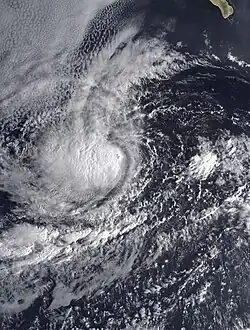 This storm was not assigned a name because it was determined to be a tropical storm after the season was over.[12] The storm was initially forecast to become a tropical storm, but information available at the time did not warrant the upgrade.[14] Subsequently, wind reports relayed from the US Coast Guard to the National Hurricane Center suggested that this cyclone was a tropical storm.[12]