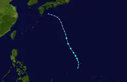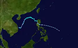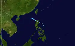 Cam developed over the South China Sea on May 18. The cyclone headed northeastward to east-northeastward and dissipated over the Pacific Ocean on May 23.