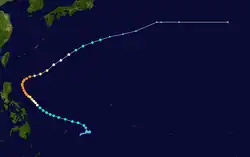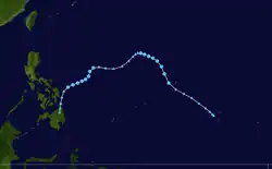 The 1996 Pacific typhoon season was an above average season, producing 30 tropical storms, 16 typhoons and six super typhoons. It has no official bounds; it ran year-round in 1996, but most tropical cyclones tend to form in the northwestern Pacific Ocean between May and December.[1] These dates conventionally delimit the period of each year when most tropical cyclones form in the northwestern Pacific Ocean. However the first named storm, Ann, did not develop until April 3. The final named storm, Greg, dissipated on December 27.