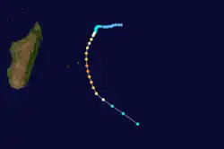 During the year, the Météo-France office on Réunion (MFR) issued warnings for tropical systems in the region as the Regional Specialised Meteorological Centre.[1] In the year, MFR tracked tropical cyclones south of the equator from the coast of Africa to 90° E.[2] The Joint Typhoon Warning Center also issued warnings in an unofficial capacity.[3]