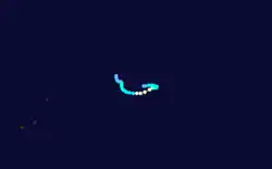 After an extended period of inactivity, the ITCZ produced two areas of convection – one was located about 550 km (340 mi) south-southwest of Diego Garcia, and the other was located 900 km (560 mi) east-southeast of that system. Both were classified as tropical disturbances on April 7 and subsequently interacted with each other.[1] The eastern system, classified as Tropical Cyclone 33S,[3] quickly dissipated due to strong wind shear and was absorbed into the western system. The disturbance continued to organize and developed a central dense overcast over the center, becoming Tropical Storm Gemma on April 8. A ridge and a trough steered the storm to the southeast and later to the east.[1] On April 9, Gemma attained peak winds of 85 km/h (55 mph), according to the MFR, while the JTWC estimated 130 km/h (80 mph) winds.[19] As with most other storms in the year, increased wind shear caused the storm to weaken. The weaker system isolated it from the upper-level steering, causing the circulation to loop southwestward. On April 16, Gemma dissipated far to the east of Rodrigues.[1]