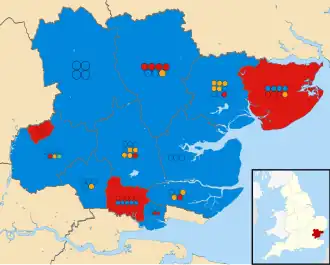 79 out of 98 seats to Essex County Council 50 seats needed for a majority | ||||||||||||||||||||||||||||||||||||||||||||||||||||||||||||||||||||||||||||||||||||||||||||||