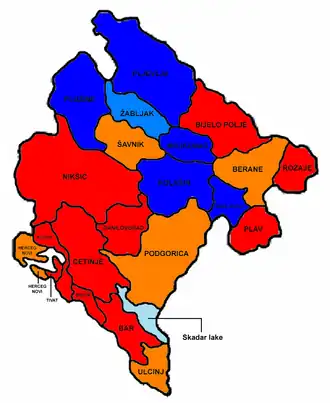 | Party of Democratic Action of Montenegro | 1,996 | 0.58 | 0 | –3 | |