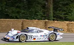 The #26 Porsche 911 GT1, which had won the pole position for the race, did not finish the race; the car, piloted by Yannick Dalmas, infamously flipped in a blowover between turns 8 and 9. This incident, as well as similar blowover incidents to the BMW V12 LMR during the 2000 Petit Le Mans and the Mercedes-Benz CLR during the 1999 24 Hours of Le Mans, resulted in Champion Racing not racing a GT1-98 and new regulations introduced in 2004 that changed the cars' geometry and reduced the chance of blow-overs.[2]