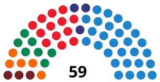 Last election 30 seats, 44.8% 12 seats, 21.3%[a] 5 seats, 4.1%[b]