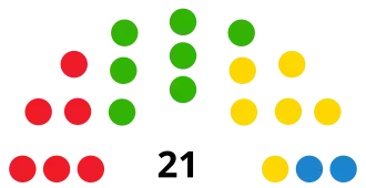 The following table lists party control in the Island Cabildos.[1] Gains for a party are displayed with the cell's background shaded in that party's colour.