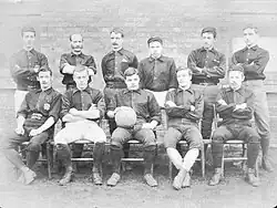 The club claimed a foundation date of 1869, and was open to all members of the corps, unlike the officer-only Royal Engineers.[4] Its first reported match played against external opposition was a 1–0 victory against the Lausanne club at the latter's Rosemary Branch ground in 1871.[5] At least five of the Lausanne players (Davenport, Foster, Dümmler, Dearle, and F. Maynard)[6] were also members of the regiment, and from 1872 played for the Riflemen as the Lausanne association side disbanded.