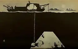 This was the first feature-length motion picture filmed underwater.[7] The underwater scenes were photographed by the Williamson Submarine Film Corporation in the Bahamas.[8] Actual underwater cameras were not used, but a system of watertight tubes and mirrors allowed the camera to shoot reflected images of underwater scenes staged in shallow sunlit waters.[9] For the scene featuring a battle with an octopus, cinematographer John Ernest Williamson devised a viewing chamber called the "photosphere", a 6×10-foot steel globe in which a cameraman could be placed. The chamber was connected to a boat by a submarine tube from where Williamson would give his directions.[10][11]