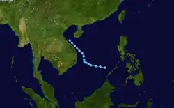 On May 15, a monsoonal trough associated with a low pressure area formed north west of the Philippines. On May 17 the low pressure area started to drift across the northern Philippines, and rapidly intensified into a tropical storm before quickly dissipating due to vertical wind shear on May 20. The remnants were soon absorbed by a non-tropical low on May 22.